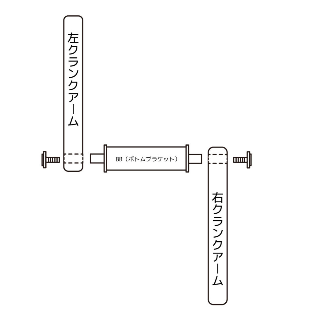 (左クランク(BBシェル)+スピンドルシャフト+(BBシェル)右クランク)